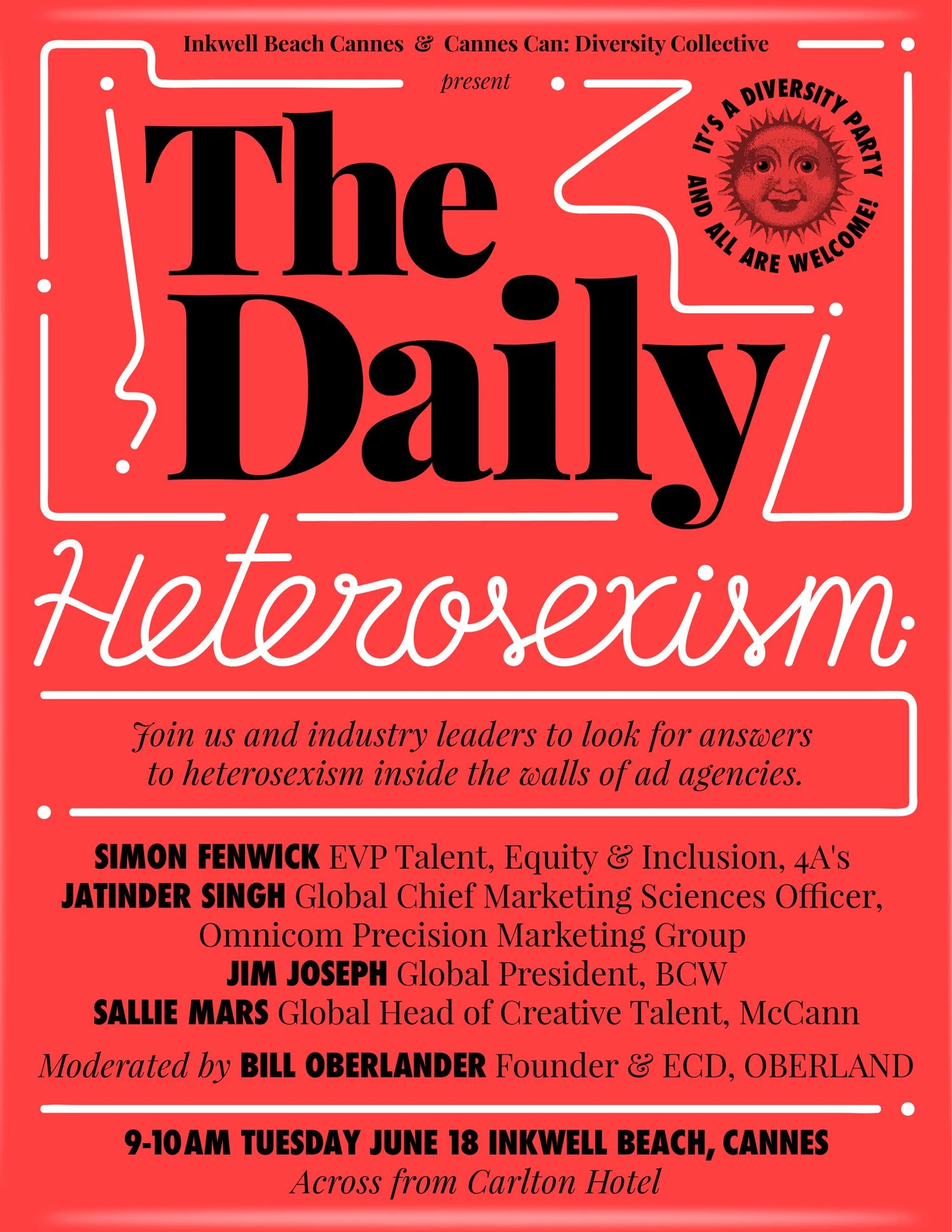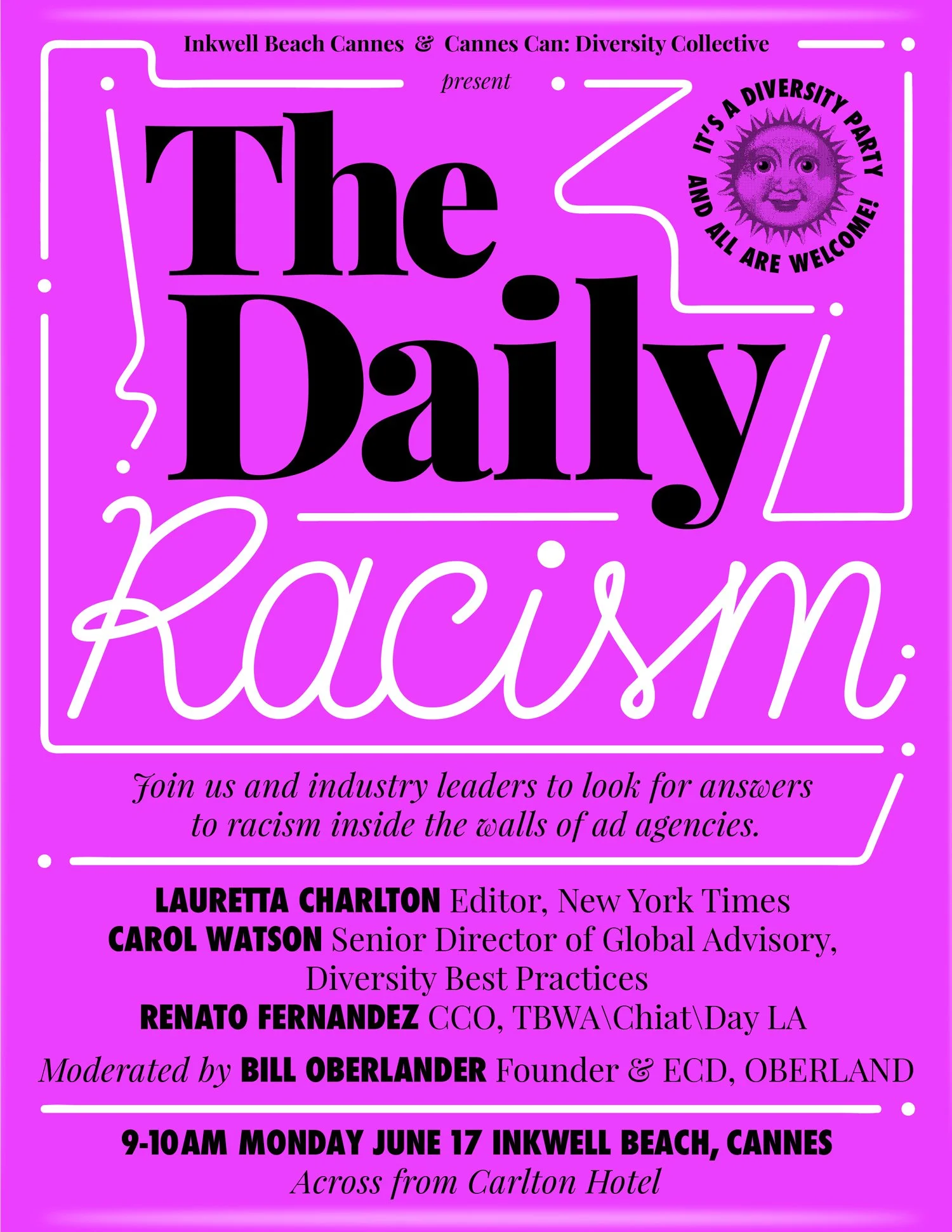 A poster series promoting five different panel discussions organized by Cannes Can: Diversity Collective featuring many leaders in the advertising industry. The events took place as part of the Cannes Lions International Festival of Creativity in June of 2019, and were moderated by Bill Oberlander of Oberland.