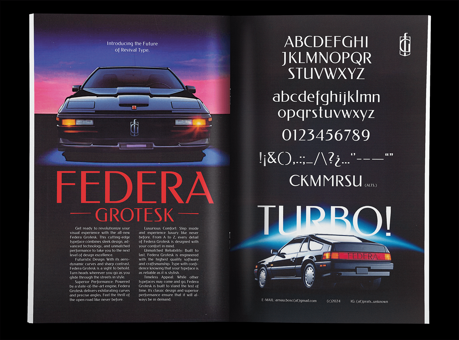 This typeface is a work in progress, developed as part of the Type Electives’ Crash Course in Revival Type Design during the winter of 2024. I chose Feder Grotesk (Jakob Erbar, 1909) as the foundation, creating a basic set of uppercase and lowercase letters, numerals, a selection of punctuation marks, and a few alternate characters. The course included several proofing documents and concluded with a fanzine spread that served as the typeface specimen.