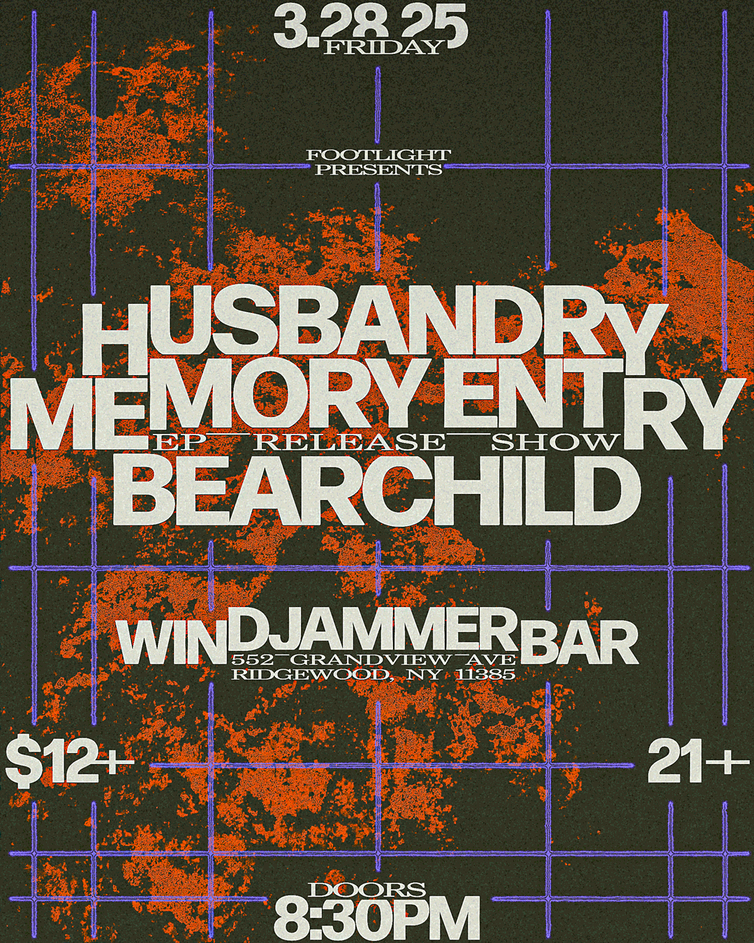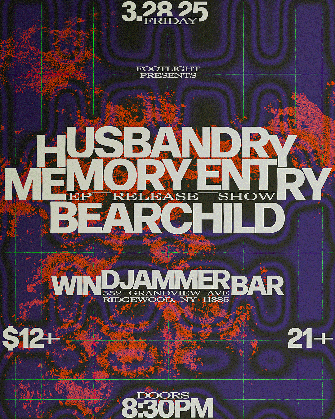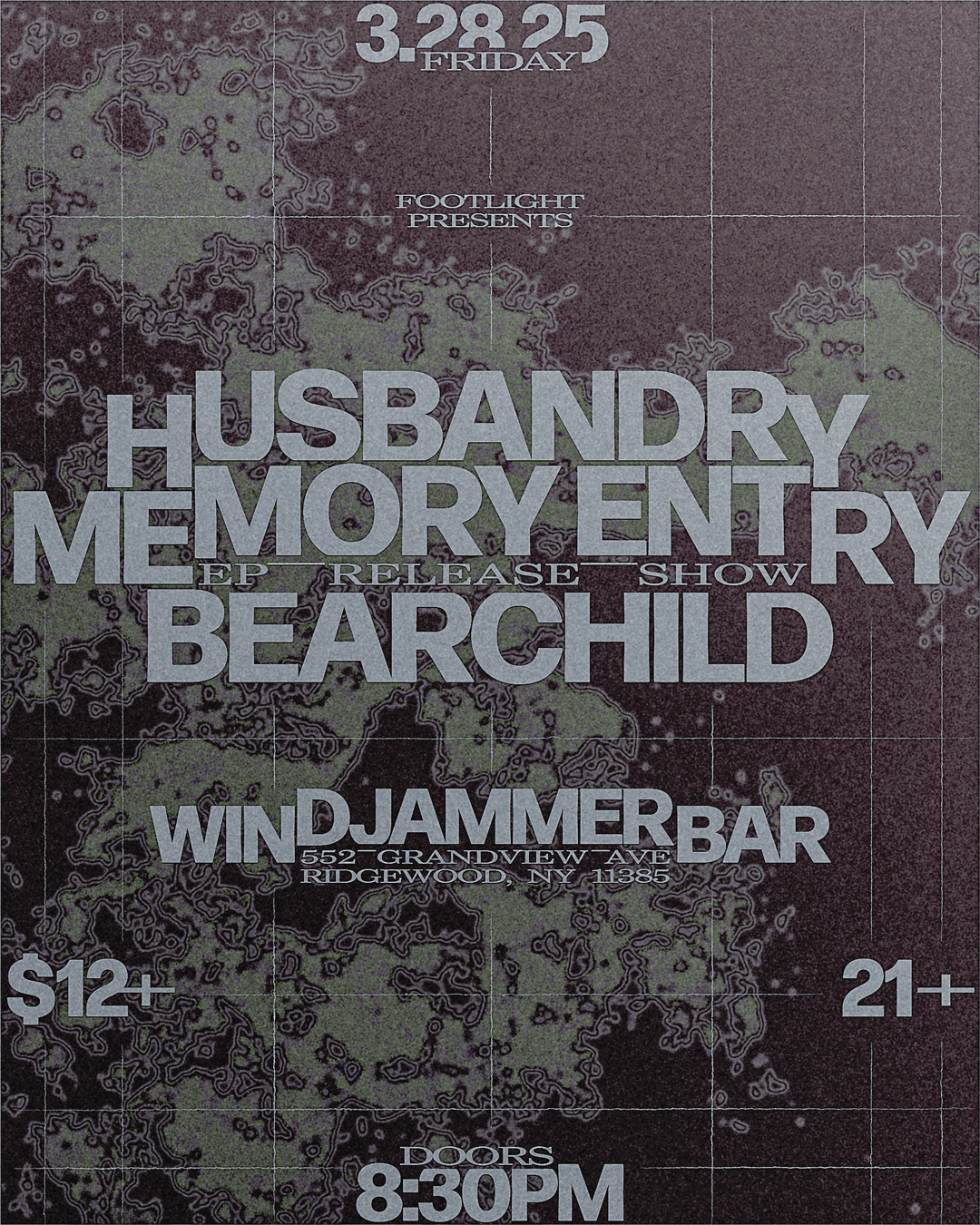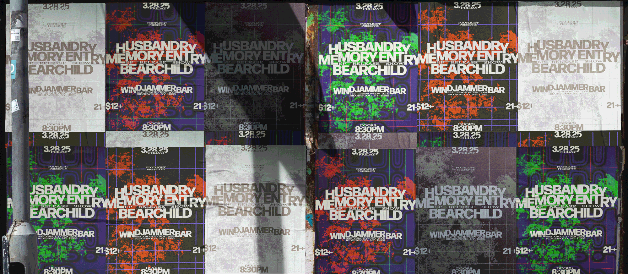 A Series of posters for Memory Entry’s EP release show with support from Husbandry and Bear Child at The Windjammer Bar in Ridgewood, Queens.