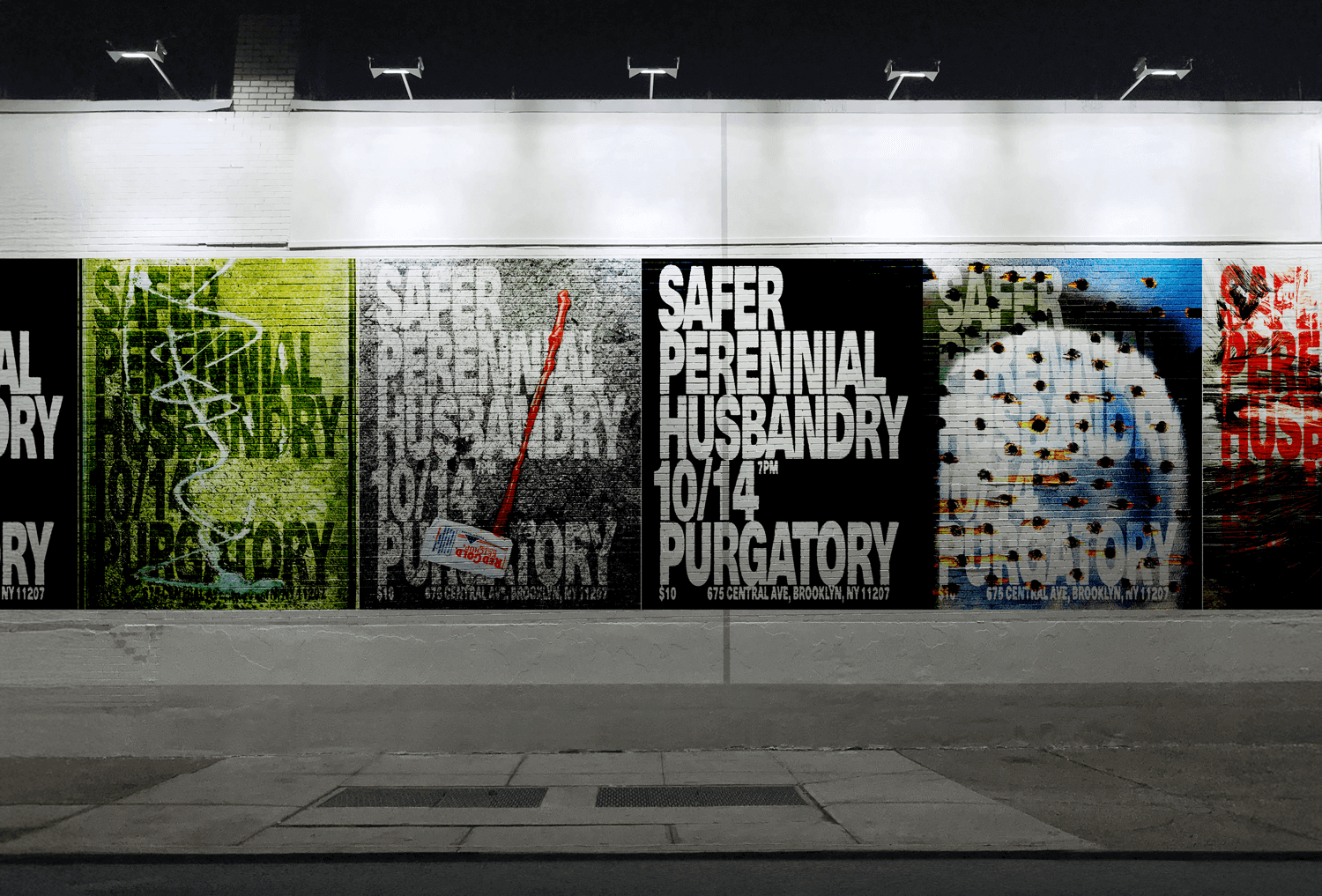 A Series of posters for a Safer, Perennial, and Husbandry show at Purgatory in Brooklyn, NY. I used different photos of textures found walking around my neighborhood, not far from the venue were the show was going to take place.